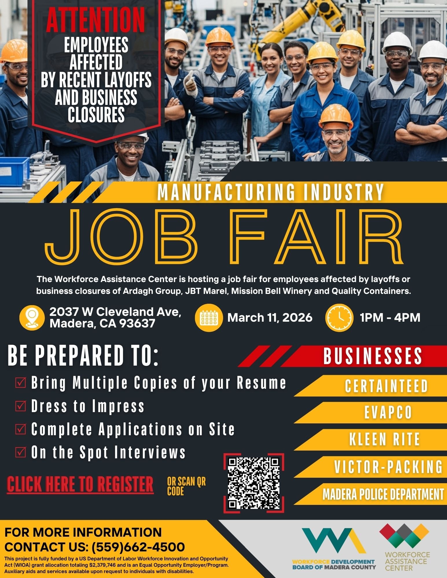Happening Wednesday, March 11, 2026, at the Madera County Workforce Assistance Center starting at 1:00 pm