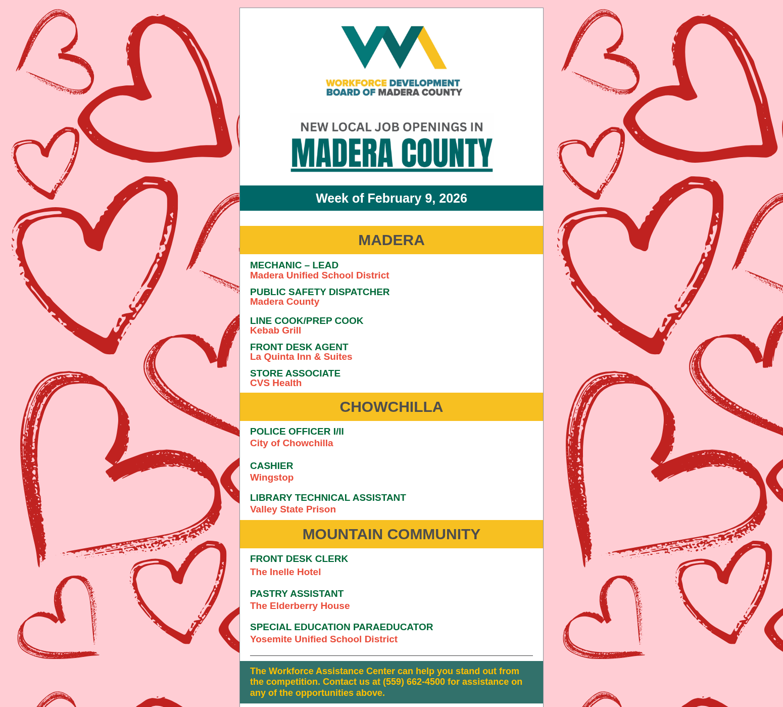 9 Feb 2026 NEW Weekly Job Board: 2/9/2026! posted in: Employment | Check back every Monday for a new list!